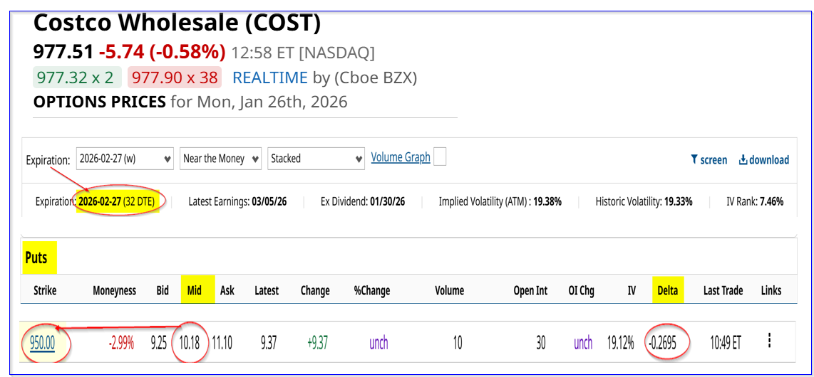 COST puts expiring Feb. 27, 2026 - Barchart - As of Jan. 26, 2026