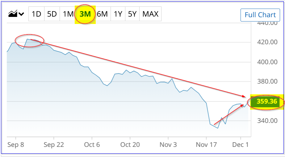 HD stock - last 3 months - Barchart - Dec. 3, 2025