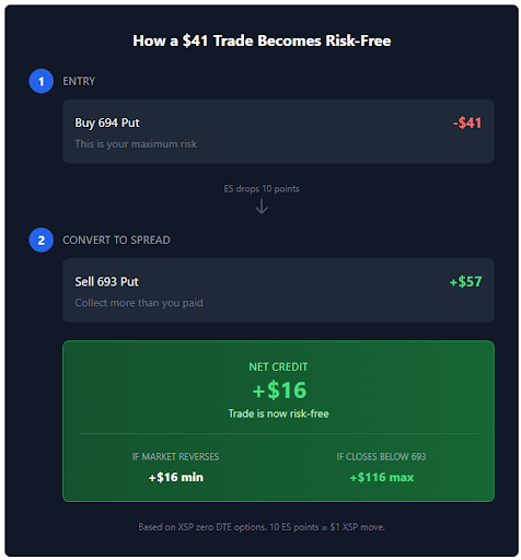 And it requires understanding the relationship between ES futures and XSP options. A 10-point move in ES equals roughly one dollar in XSP. That math is the foundation of the entire strategy.