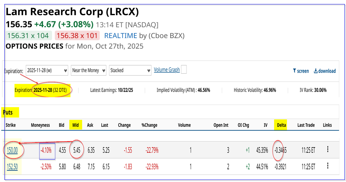 LRCX puts expiring Nov. 28 - Barchart - As of Oct. 27