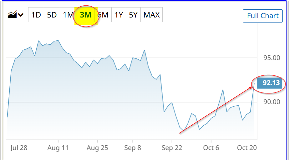 NDAQ stock - last 3 months - Barchart - Oct. 21, 2025