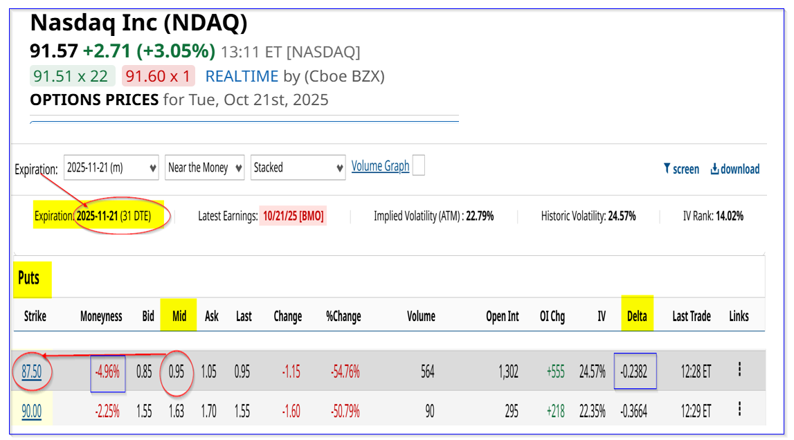NDAQ puts expiring Nov. 21, 2025 - Barchart - As of Oct. 21, 2025