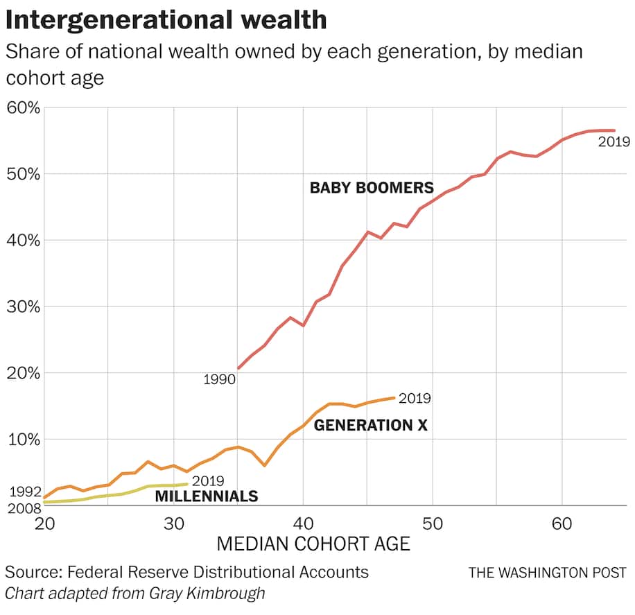 What about wealth? Well baby boomers had more wealth too than subsequent generations at least to date. Some of this is due to the difficulty of generating returns over time but some is also related to higher debt levels of younger generations. They are burdened with student loans and other debt that makes it hard to build wealth.