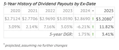 I own 250 shares of the REIT at an average cost of $51.24 per share. Following this increase, my yield on cost is 6.28% (Realty Income's forward yield is 5.63% at $57.09 per share).