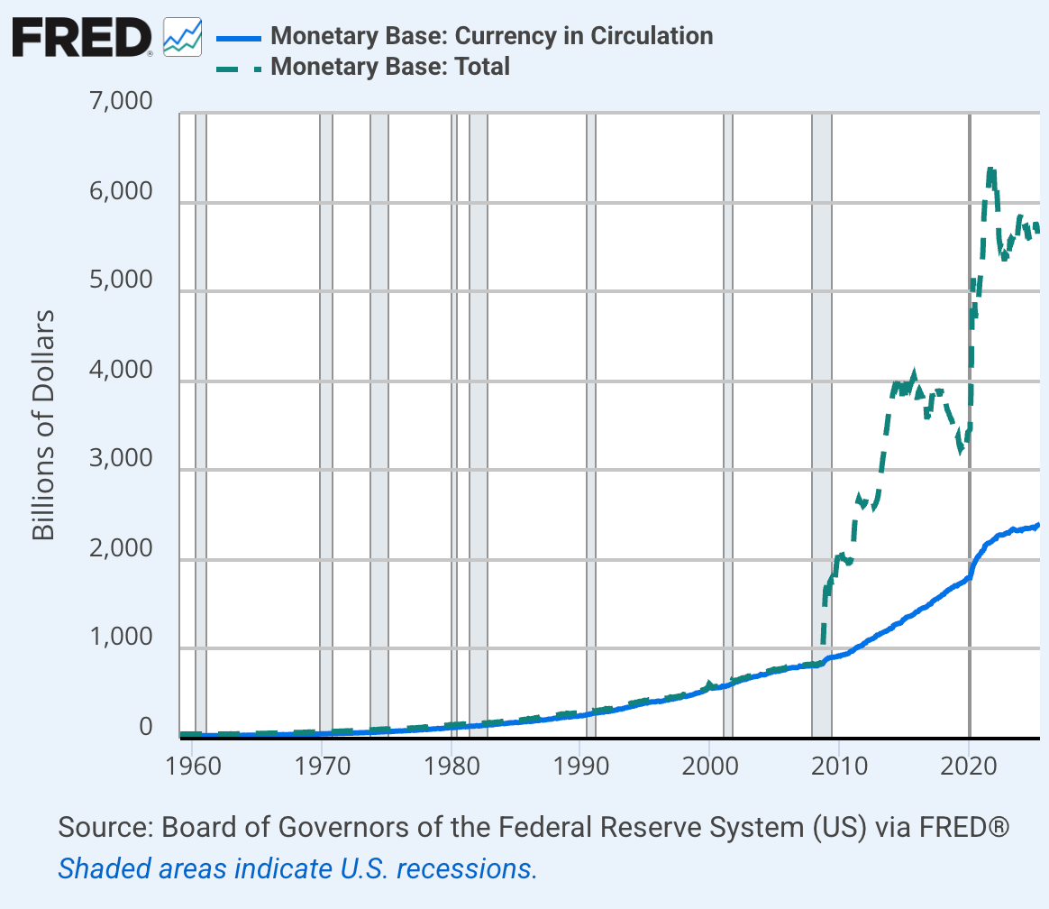 5. It does make sense to stop paying interest on bank reserves and go back to the pre-2008 system where the monetary base was 98% currency. But ending IOR would probably not save any money in the long run, as you’d merely be swapping one government liability (T-bonds) for another (interest-bearing reserves).