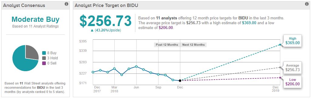 Looking at BIDU now, we see it trading at $179 per share. The analysts give it a 43% upside potential, with an average price target of $256, and a ‘Strong Buy’ consensus rating.