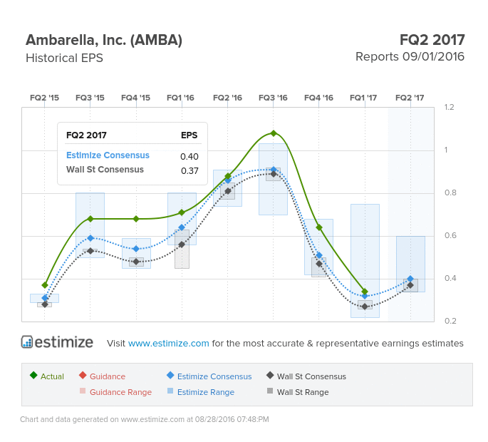 Ambarella (AMBA) Information Technology - Semiconductors | Reports September 1, after the close.
