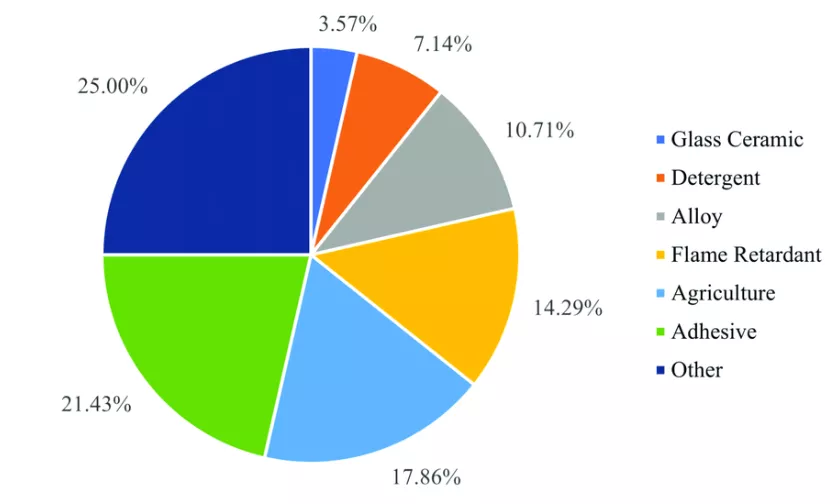 While consumption estimates vary and change over time, below is a pie chart that shows several key uses of boron. Glass and ceramics production demand a large portion of boron. Boron is used to make borosilicate glass, which is more resistant to thermal shock and chemical corrosion. This makes it ideal for cookware, laboratory equipment, and industrial applications like reinforcement fiberglass, electronic displays, and optical lenses. Semiconductor manufacturing is the dominant (80%) consumer of high-purity boron, where boric acid is used to make boron trichloride, which is used for etching and chemical vapor deposition for doping.