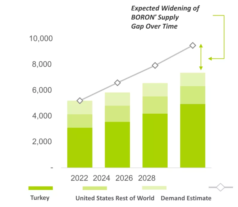 The company also cites forecasts for a fairly large supply gap over the next few years as the plethora (hundreds) of use cases for boron demand more and more product and as new project supply lags demand as it comes online.
