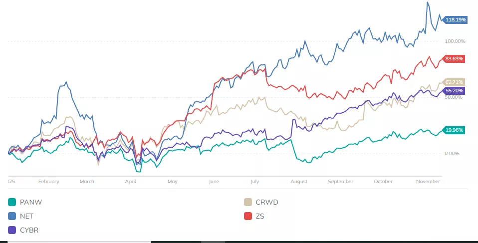 eSecutityPlanet.com provides a list of cyber security companies (see here) of which the 5 largest pure-play companies (i.e. +$20B in market capitalization) are included in our Pure-Play CyberSecurity Software Stocks Portfolio. and below is the focus of each constituent, how it performed week-ending November 7th, in descending order, and in October, its market capitalizations, the catalyst(s) contributing to the change in its stock price last week, and a chart showing the performance of the portfolio YTD.