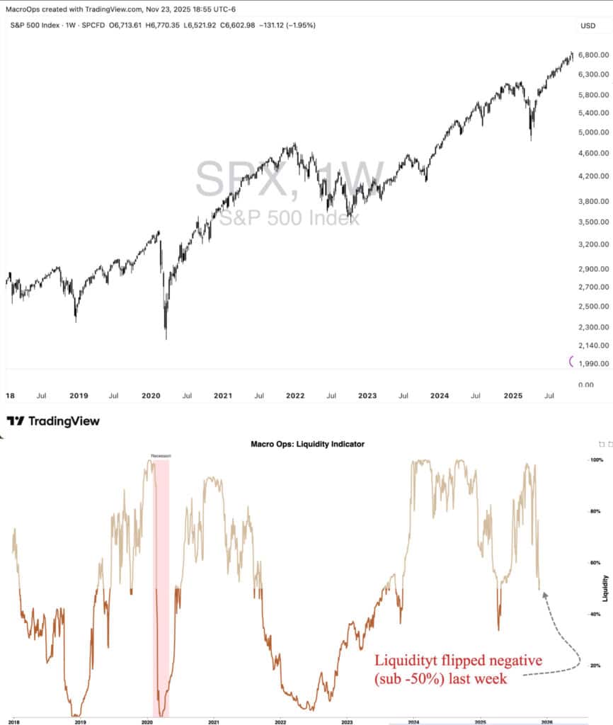 4. While liquidity continues to weaken… Our liquidity indicator flipped negative last week for the first time since the Liberation Day selloff.