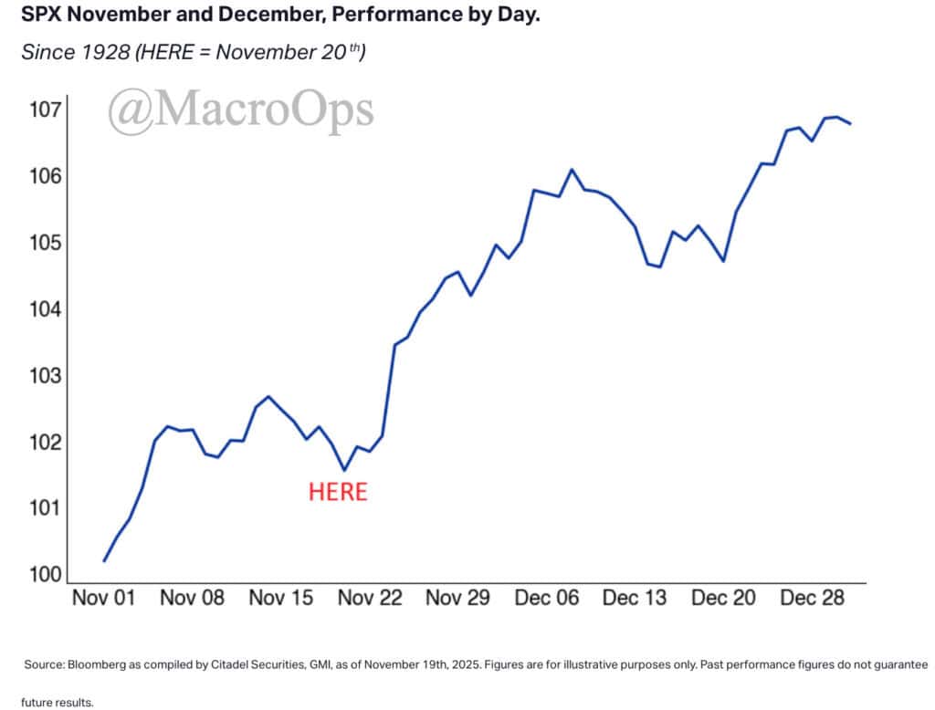 7. On the positive side of the ledger, we’re in a very strong seasonal window over the next two weeks. And with markets oversold, we could see some strong short-term rallies (chart via Citadel).