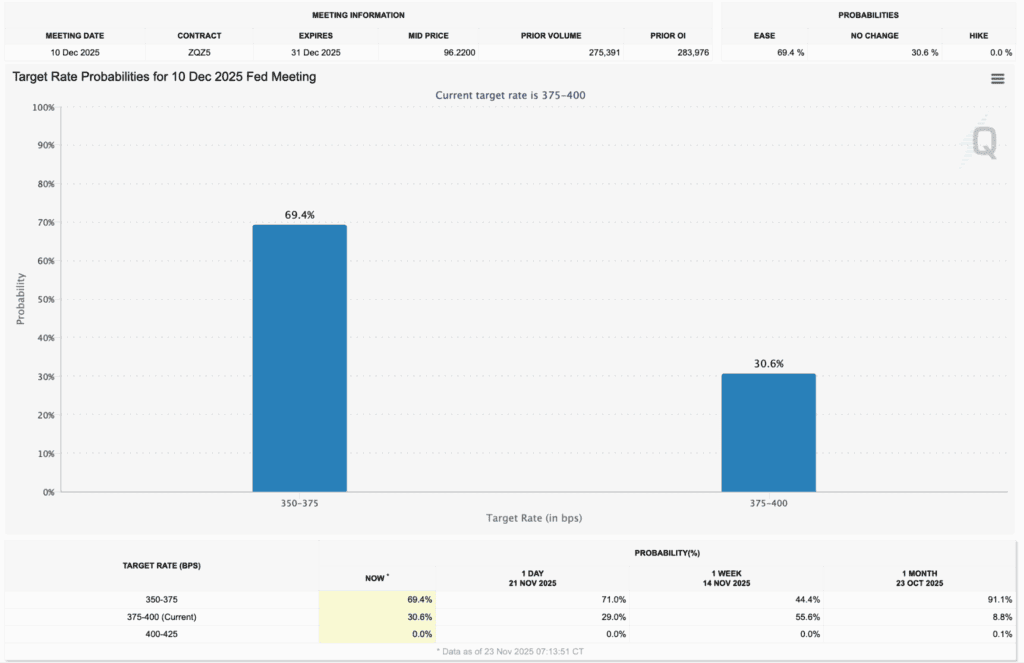 “While the labor market remains solid, recent indicators suggest some cooling, but with the shutdown delaying key data, it’s premature to commit to further easing in December. We need more evidence that inflation is durably heading to 2% before adjusting again.” ~ John Williams, FOMC