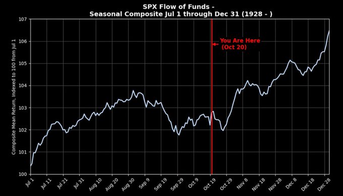 This rotation is not surprising over the last few days, as October marks the fiscal year-end for about 24% of all mutual funds. As such, they need to rebalance exposures, capture gains, and sell tax losses for the year, which tends to add some pressure to markets near the end of the month.