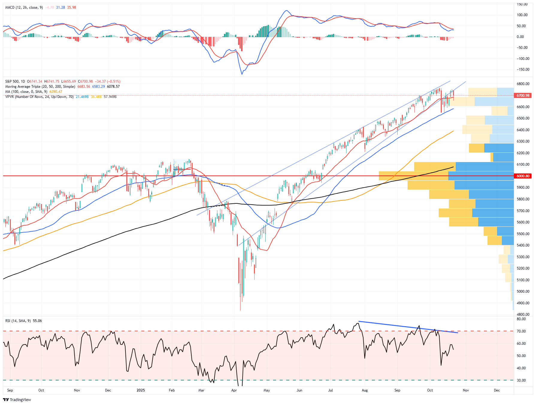 The bad news is that the market failed at the bottom of the rising bullish trend channel from the “Liberation Day” lows. This makes the 20-DMA an important short-term support with the 50-DMA just below it. For now, however, the bullish trend remains, and “buy the dip” continues to work for now.