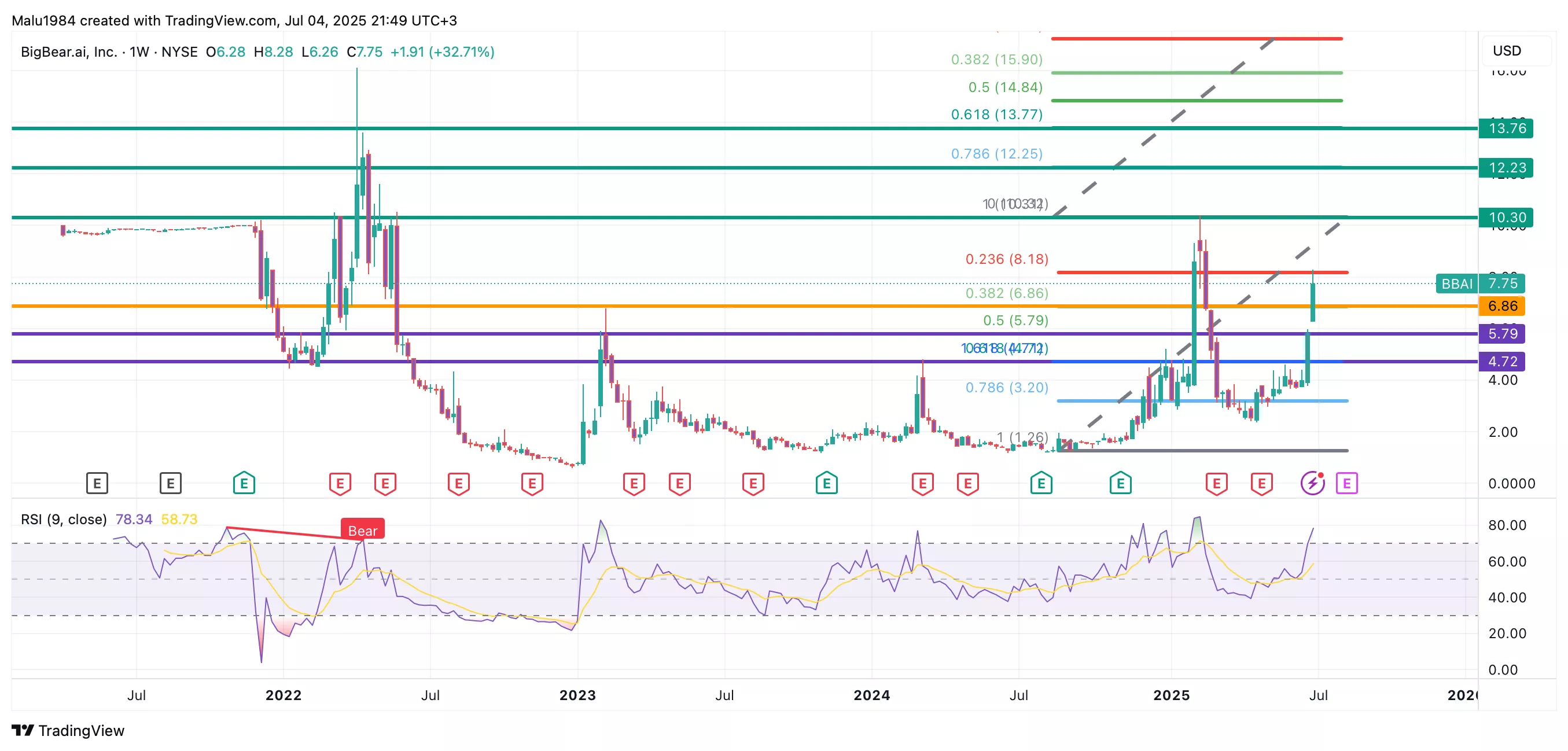 After a long period of consolidation, BBAI gained strong momentum between November 2024 and February 2025, reaching an all-time high of 10.32.