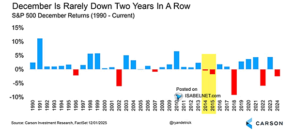 However, as Sentiment Trader noted, not every year will turn out to be bullish. That is just a statistic from market history. However, given that last December was a “dud,” that also adds to the bullish ledger for investors as two consecutive negative Decembers are rare. But even that can happen.