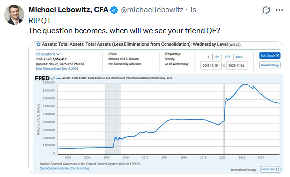 The signal is early, but historically tends to support further bullish advances. As we previously discussed, you can expect some irregular trading activity over the next two weeks as mutual funds distribute their annual gains and income. However, after that, with retail buyers continuing to “buy dips,” professional managers underperforming, and year-end performance chasing coming into view, the market should perform better.