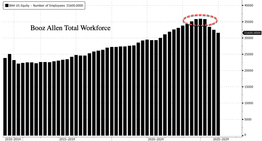 Last spring, Booz Allen said it was undergoing a major restructuring and planned to cut roughly 2,500 jobs, about 7% of its workforce, as President Trump's DOGE efforts reduced government spending by discontinuing federal contracts.
