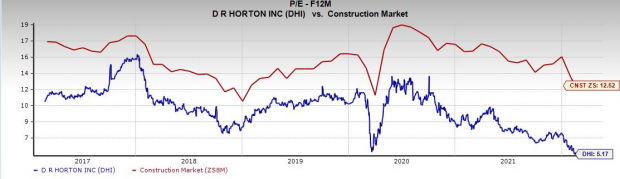 On the valuation side of the coin, DHI trades at decade-long lows at 5.2X forward 12-month earnings. This is highly impressive considering its stock price is up 500% during that stretch, including its recent decline. Plus, D.R. Horton trades at a 50% discount to its own five-year median and 67% below its highs.