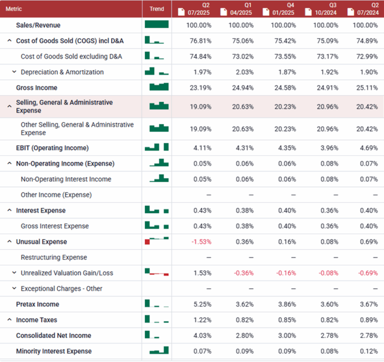 For example, if you’re using the Fundamentals Analyzer software tool, you can instantly convert a balance sheet or income statement into a common size format. This lets you spot subtle shifts in cost structure, asset allocation, or profitability that might otherwise go unnoticed.