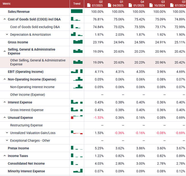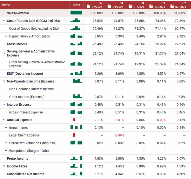 For instance, you can quickly see if rising sales are being eaten up by higher costs, or if the company is improving its bottom line.