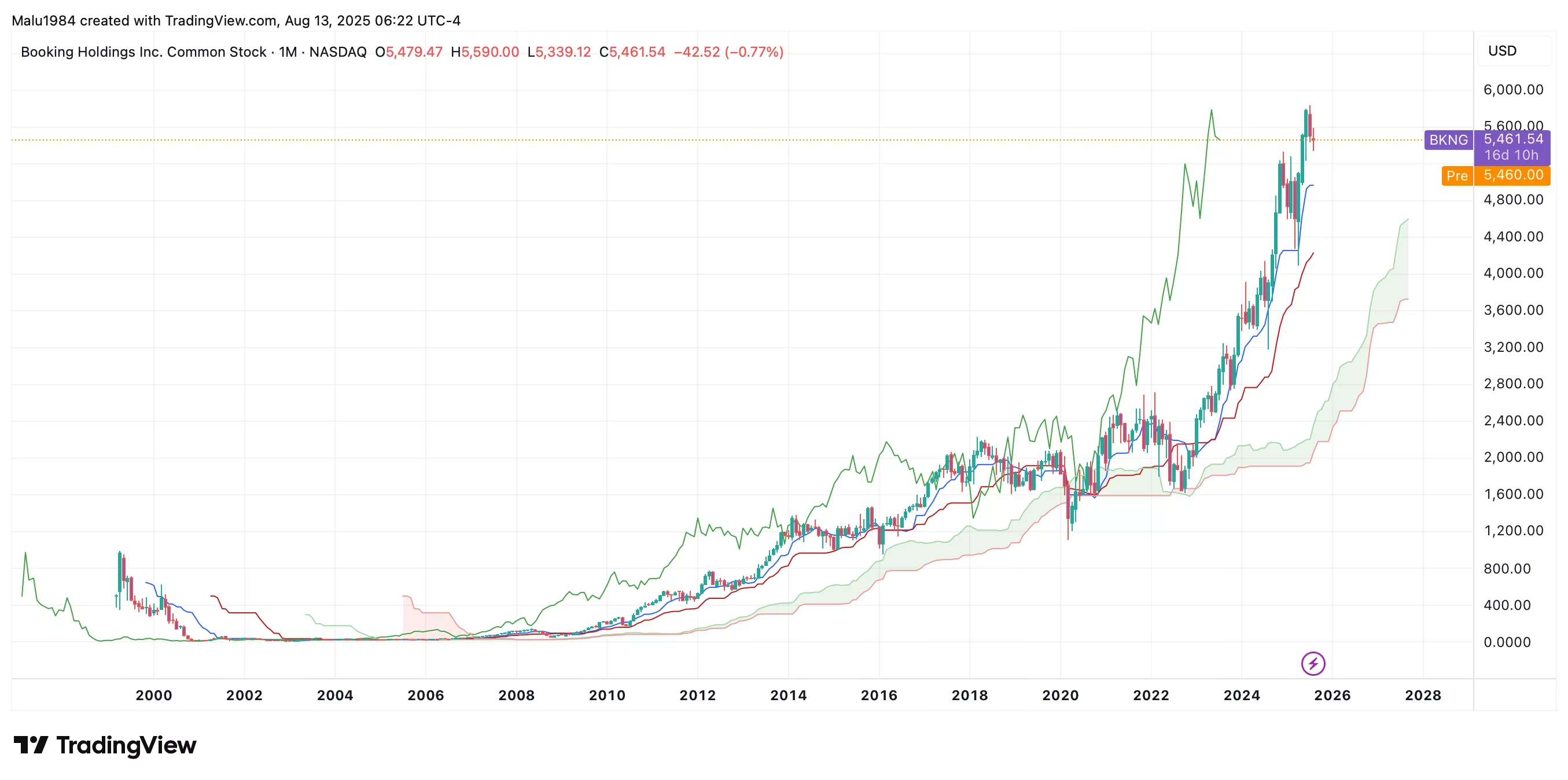 Booking Holdings has been a growth stock since 2000, maintaining a strong long-term uptrend.