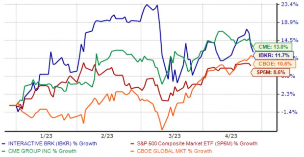However, not all stocks within the sector have faced pressure from sellers, including Interactive Brokers (IBKR - Free Report), CME Group (CME - Free Report), and Cboe Global Markets (CBOE - Free Report). Below is a chart illustrating the year-to-date performance of all three stocks, with the S&P 500 blended in as a benchmark.