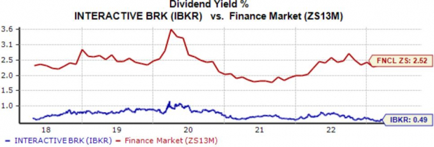 In addition, IBKR shares provide a passive income stream, limiting the impact of drawdowns in other positions; currently, the company’s annual dividend yields 0.5%, below the Zacks Finance sector average.