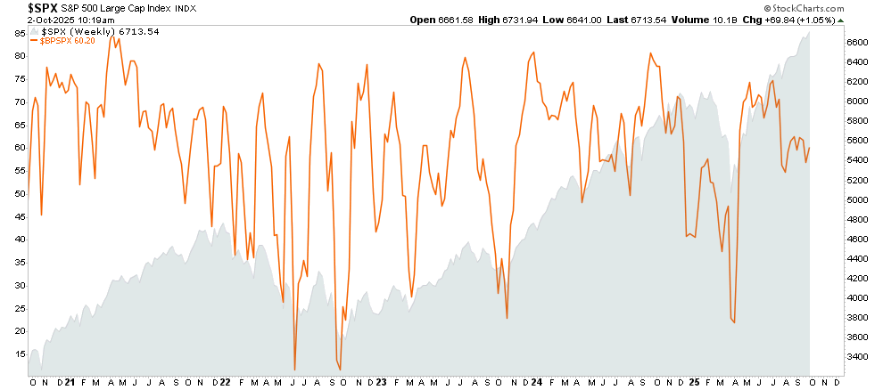 Secondly, the number of stocks on “bullish buy signals” is also negatively diverging from the rising market. Logically, if the markets are hitting new all-time highs, it should drag most stocks up with it.