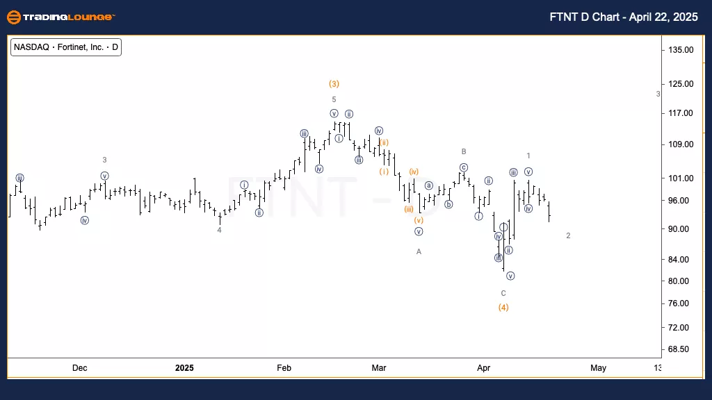 Daily Chart Insight: Fortinet has finished a clear five-wave rally, completing Minor wave 1 of Intermediate wave (5). The current move is corrective, forming wave 2. A break above $100 (TradingLevel1) would be a bullish signal confirming the setup for wave 3.
