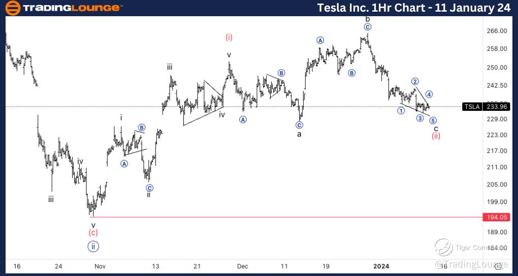 Tesla Inc., TSLA: 1-hour Chart 11 January 2024