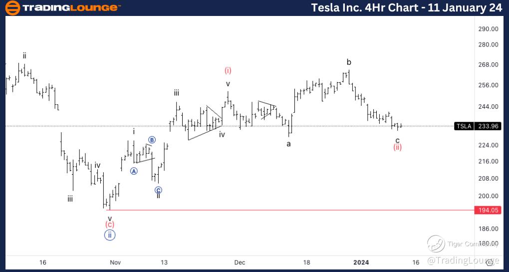 Tesla Inc., (Nasdaq: TSLA): 4h Chart 11 January 2024