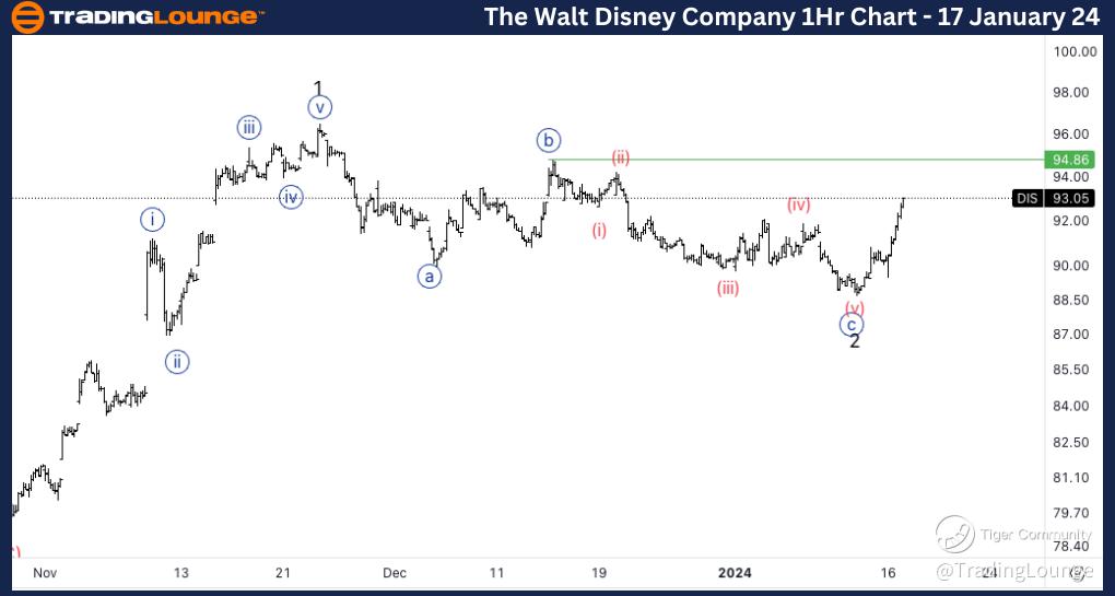 The Walt Disney Company, DIS: 1-hour Chart 17 January 2024