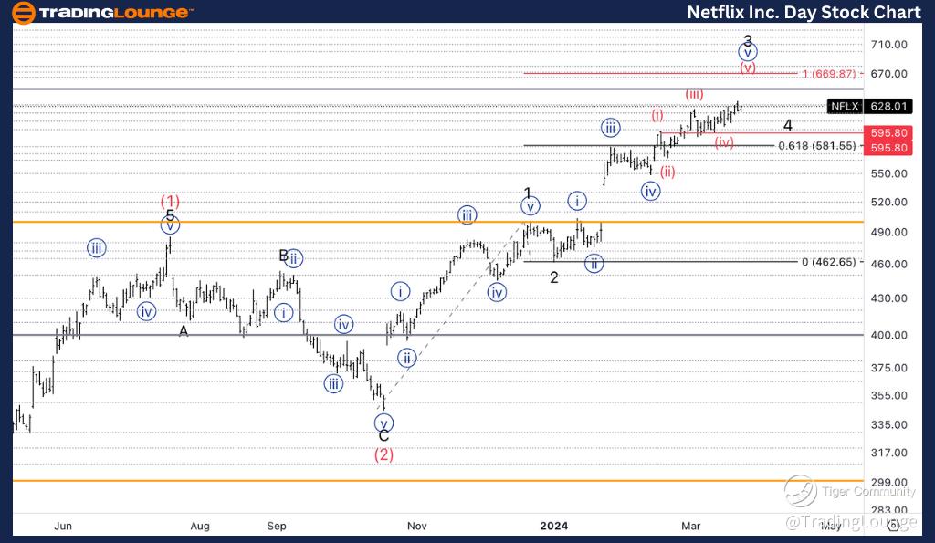 Welcome to our NFLX Elliott Wave Analysis Trading Lounge, where we provide comprehensive insights into Netflix Inc. (NFLX) using Elliott Wave Technical Analysis. Let's explore the market dynamics as of the Daily Chart on 25th March 2024.