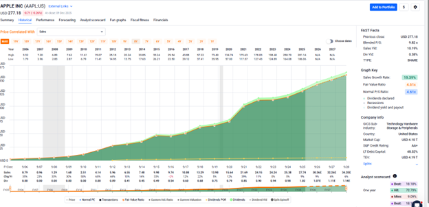 - Price Follows Fundamentals: Over time, as Apple’s earnings and cash flows increased, its price followed. This confirms the principle of fundamental vs technical investing: fundamentals tell you what to buy; technicals may help with timing, but they do not define value.