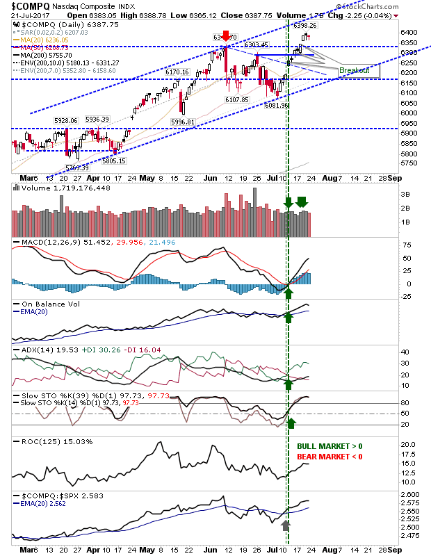 The Nasdaq held its ground and Tech averages remain the strongest of the indices. Momentum traders should keep their focus here.
