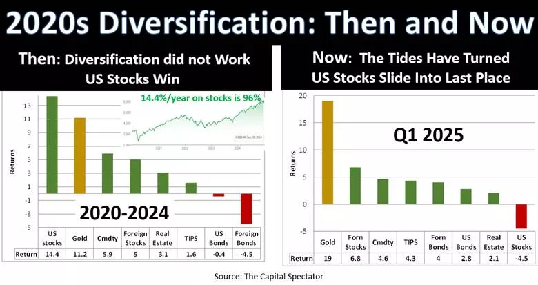 Until now, diversification beyond US stocks hurt performance because the best place to be was all in US stocks.