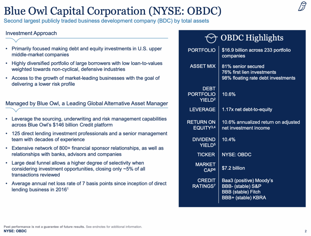 Next on our list of high-dividend stocks to review is Blue Owl Capital Corporation (OBDC).