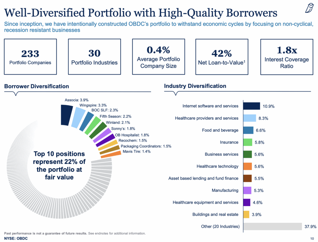 Blue Owl Capital is one of the largest BDCs, with a diversified portfolio across different companies and industries. Although it has a relatively short history as a publicly traded company, it has shown strong fundamentals.