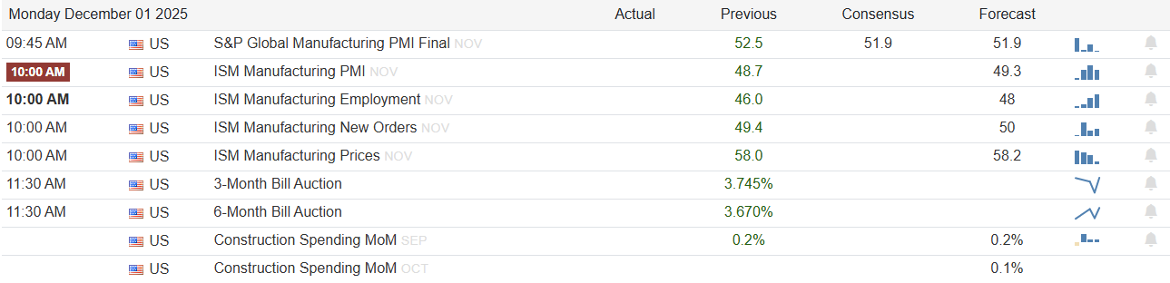 Also on the agenda this week will be Friday’s PCE prices index. This report will provide the Fed with an update on inflation, one of the few pieces of current government data to guide them during their December 10th FOMC meeting. Currently, the market assigns an 87% the Fed cuts rates at the meeting.