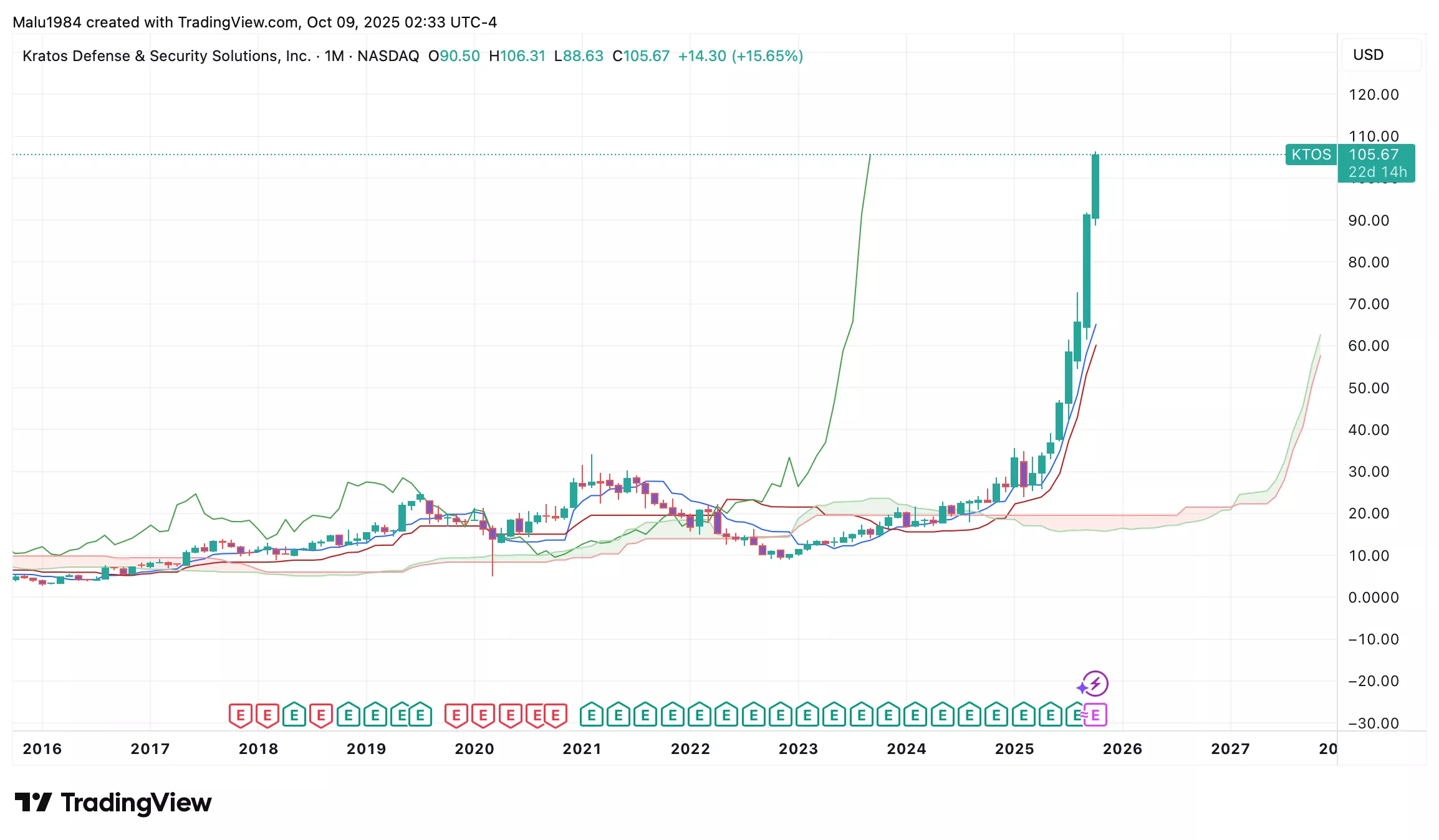 After more than 20 years of being flat, KTOS has been in a steady uptrend since December 2022.