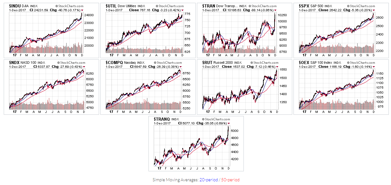 At the time of writing this post on December 2, you will see that, of the 9 Major Indices, the S&P 500 Index has gained 18.02% year-to-date, as shown on the first graph below, while the Nasdaq 100 and Nasdaq Composite Indices have gained the most, and the Russell 2000 and Dow Transport Indices the least.