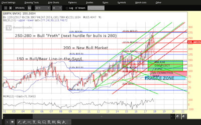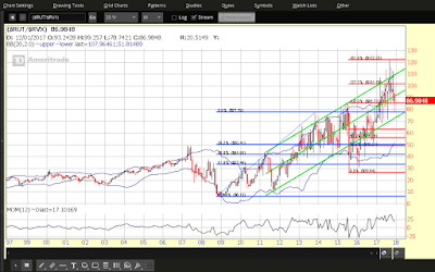 In my post of November 26, 2016, I was projecting a rally in the SPX to around 2700 by the next U.S. Presidential election in 2020. Markets have certainly been much more robust this year than I anticipated, as this level has almost been hit already. It rallied to an all-time high of 2657.74 on November 30 and closed on December 1 at 2642.22.