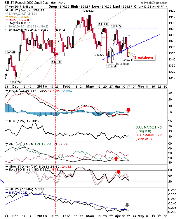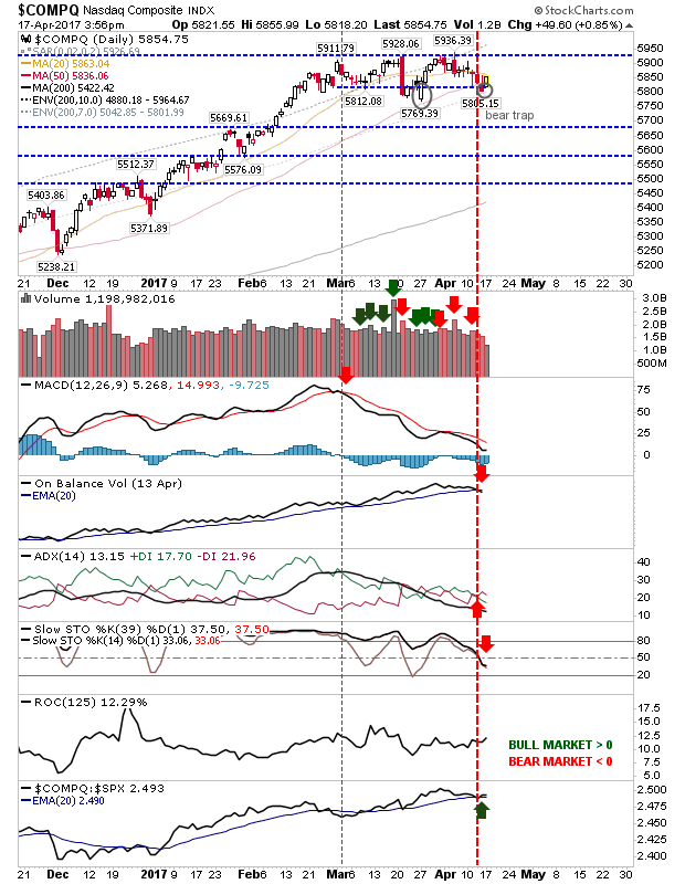 A positive response to Friday's selling helped erase those losses, but for many indices it wasn't enough to recover support or reverse technical 'sell' triggers.