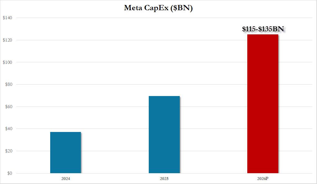 Last but not least, META's 2026 capex forecast was an absolute stunner: the company said that it anticipates 2026 capital expenditures to be in the range of $115-135 billion.