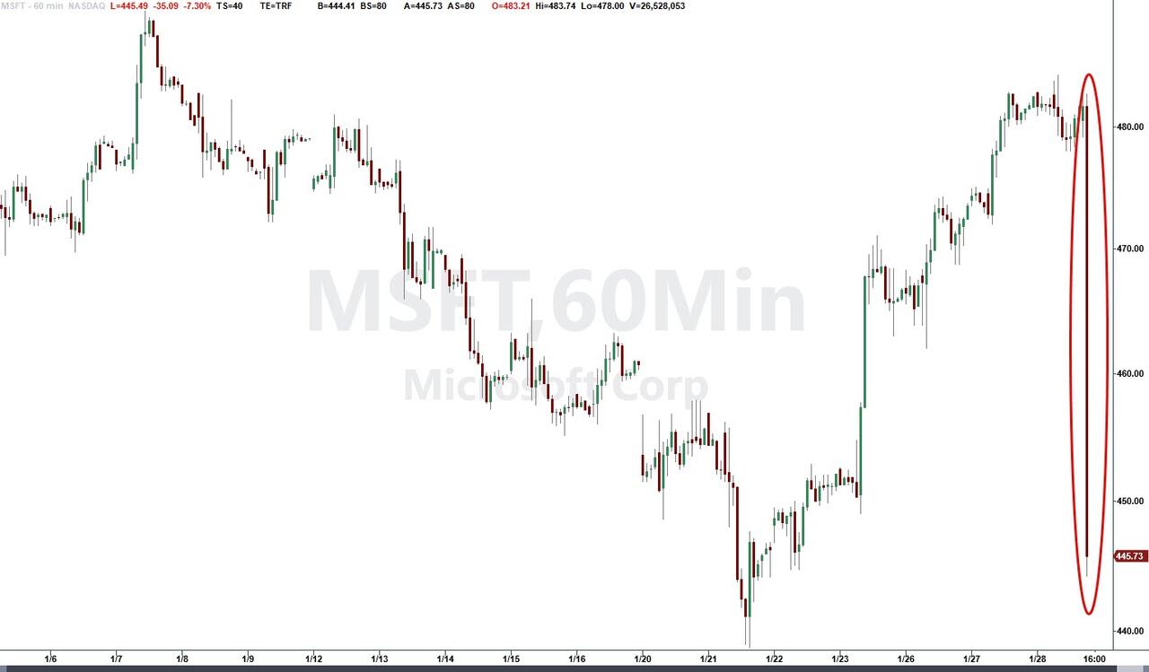 The result of all this was selling pressure hitting MSFT (down over 8% after hours)...