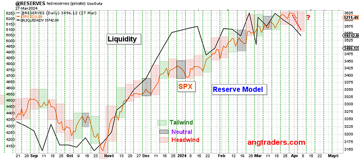 The chart below, shows two models: the Liquidity Model, and the Reserve Model. Both models show weakness going into the second week of April.