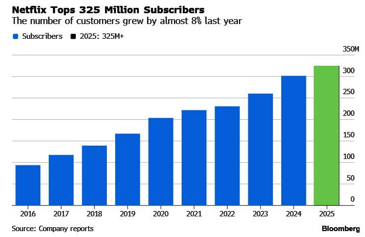 The streaming leader said it plans to increase spending on films and TV shows by 10% in 2026 while forging ahead with plans to buy the studio and streaming business of Warner Bros., a deal that would unite two of the world’s largest entertainment companies. Netflix spent about $18 billion on programming last year, with subscribers growing almost 8% to top 325 million.