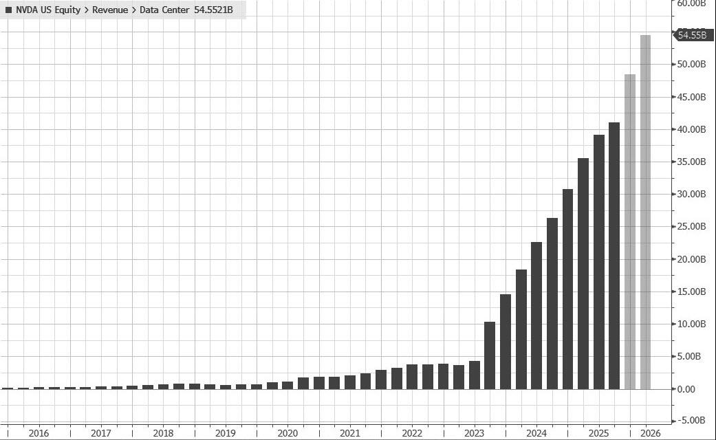 China aside, Nvidia - which is the world's largest company and accounts for 8% of the S&P - is growing quickly and Wall Street, which has revenue estimates going as far out as 2030, projects steady increases in that time. The question is at what rate? Any hint of disappointing numbers and investors will once again raise concerns that the massive spending in AI infrastructure has to eventually slow down.